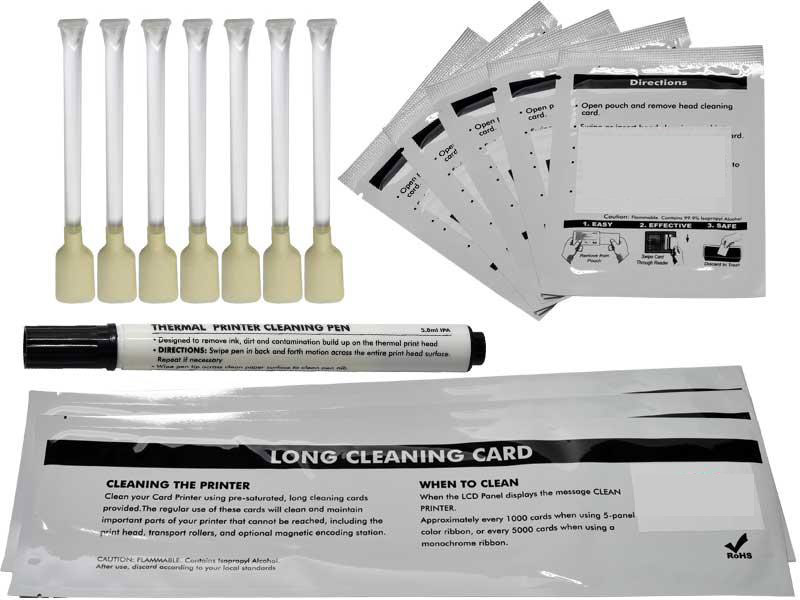 ( 5 x CR-80 Card, 7 x Alcohol Swab , 3 x Long T-card, 1 x Print Head Cleaning Pen ) |